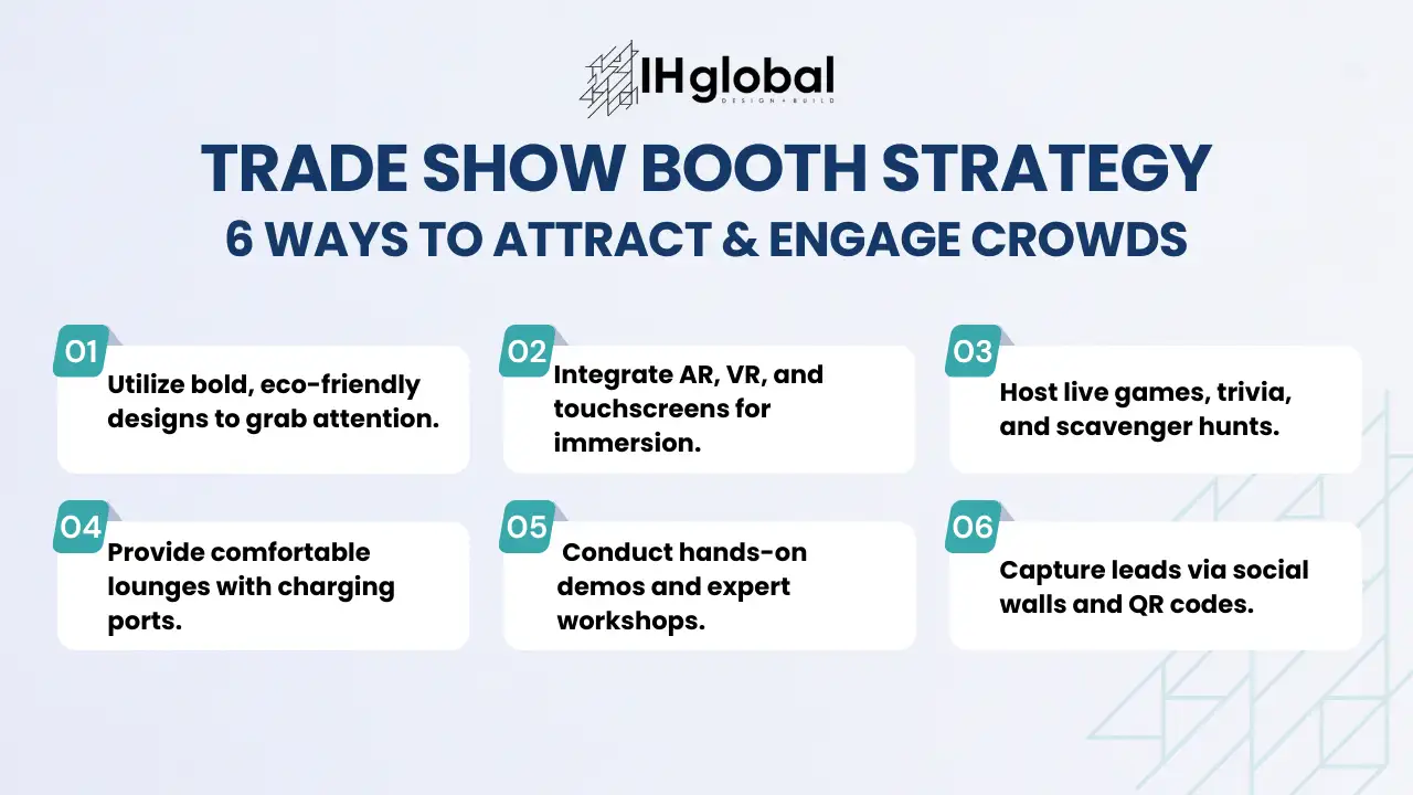 Use unique themes, cutting-edge technology, engaging activities, and attractive giveaways to capture attention and encourage interaction.
